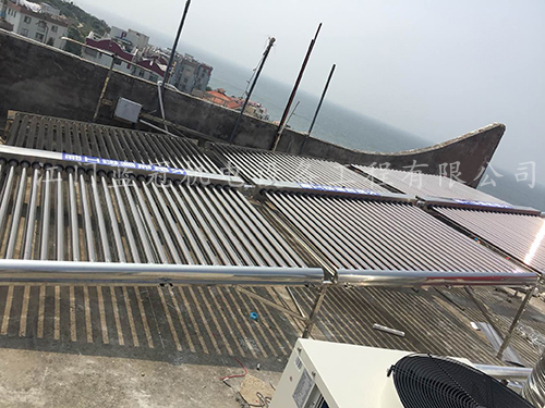 伶仃岛秦先生通过网络搜索找到蓝冠机电,要求为其宾馆做热水工程方案,采用恒温恒压24小时供水,蓝冠机电为其选用宾馆热水工程方案为:300支真空管太阳能,1台3P空气能热水器,2个1.5吨保温水箱,即采用太阳能热水工程+空气能热水工程。